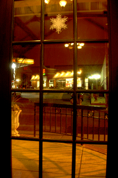 Peering through the window in one of the Westminster Fire Engine and Hose Co. No. 1 engine bays.